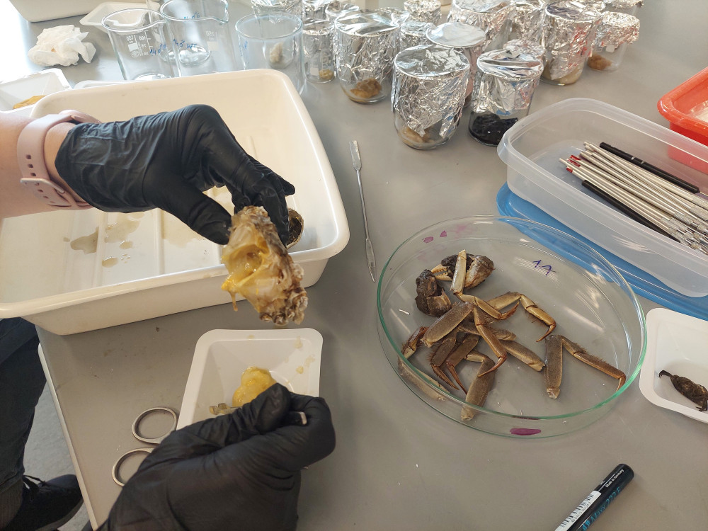 Dr Joanna Hegele-Drywa i prof. dr hab. Monika Normant-Saremba z Pracowni Ekofizjologii i Bioenergetyki KEM rozpoczęły latem badania we współpracy z dr hab. Anną Hallmann z Katedry i Zakładu Biochemii Farmaceutycznej Gdańskiego Uniwersytetu Medycznego (GUMed), która wraz z zespołem (dr Aleksandrą Czumaj, mgr Pauliną Goździk i mgr Dagmarą Leszczyńską) realizuje badawczo-edukacyjny projekt o akronimie PharmaSea (Ochrona bioróżnorodności Bałtyku dzięki edukacji i monitoringowi zanieczyszczeń farmaceutycznych). Projekt uzyskał w tym roku finansowanie Fundacji Orlen dla Pomorza w ramach programu Bałtycki Grant Bioróżnorodności, a jednym z jego celów jest analiza środowiska Morza Bałtyckiego pod kątem zanieczyszczenia farmaceutykami. W ramach tego projektu przeprowadzone zostaną niecelowane analizy zarówno w wodzie zebranej sezonowo w różnych rejonach Morza Bałtyckiego (m.in. w Zatoce Gdańskiej, Zalewie Wiślanym i Zatoce Meklemburskiej), jak i w wybranych skorupiakach tam występujących (m.in. w krabiku amerykańskim Rhithropanopeus harrisii, krabie wełnistoszczypcym Eriocheir sinensis i krabie brzegowym Carcinus maenas). Naukowczynie z KEM są zaangażowane w zbiór prób środowiskowych, jak również w przygotowanie organizmów do analiz zawartości różnych farmaceutyków (tj. analizy morfometryczne, pobranie i pobranie narządów i tkanek). Dzięki analizom niecelowanym z wykorzystaniem wysokosprawnej chromatografii cieczowej sprzężonej ze spektrometrią mas możliwa będzie identyfikacja farmaceutyków z różnych grup klasyfikacji anatomiczno-terapeutyczno-chemicznej (tzw. klasyfikacja ATC), co z kolei pozwoli na określenie skumulowanego ryzyka zagrożenia środowiska. Drugim celem projektu PharmaSea jest analiza świadomości społecznej na temat utylizacji farmaceutyków i zanieczyszczenia nimi środowiska w oparciu o badania ankietowe (link do ankiety: https://pbs.onfly.pl/poznajto251690-2/?tqs=A) oraz podniesienie tej świadomości wśród mieszkańców Pomorza poprzez różnego rodzaju działania informacyjno-edukacyjne (więcej informacji na stronie: https://www.gdansk.pl/wiadomosci/Chca-wiedziec-gdzie-wyrzucasz-leki-Wypelnij-ankiete-pomoz-srodowisku,a,295509).