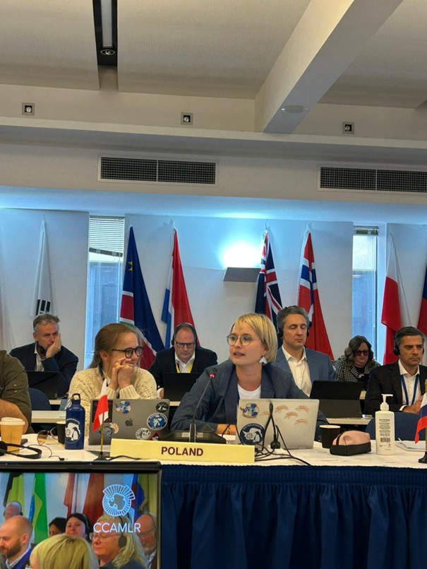 Aktualnie w Hobart, na posiedzeniu Komitetu Naukowego i Komisji CCAMLR 20-31.10.2025, Polska jest reprezentowana przez Panią mgr Jolantę Mosór (Ministerstwo Rolnictwa i Rozwoju Wsi), dr Annę Panasiuk (Uniwersytet Gdański) i mgr inż. Kingę Hoszek-Mandera (Uniwersytet Gdański, stypendystkę Komisji ds. Zachowania Żywych Zasobów Antarktyki).