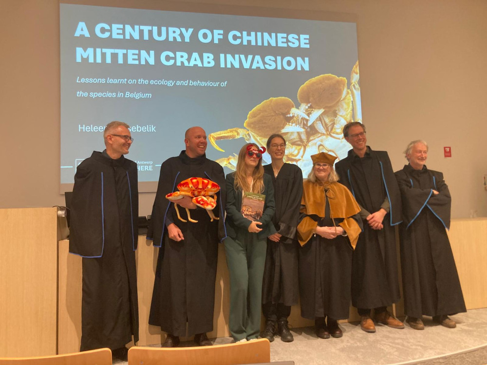 W dniu 27 października 2025 r., prof. dr hab. Monika Normant-Saremba uczestniczyła jako członek komisji oceniającej w obronie rozprawy doktorskiej p. Heleen Keirsebelik pt.:”A century of Chinese mitten crab invasion. Lessons learnt on the ecology and behaviour of the species in Belgium”, która odbyła się na Uniwersytecie w Antwerpii (Belgia). Procedura obrony i nadania stopnia doktora różni się od przeprowadzanej w Polsce. W pierwszym etapie została powołana komisja oceniająca, złożona z przewodniczącego, czterech członków i promotora rozprawy. Następnie przewodniczący rozesłał wszystkim członkom komisji plik z pierwszą wersją pracy. Po miesiącu odbyła się tzw. obrona wstępna przed komisją oceniającą, trwająca trzy godziny. W jej trakcie doktorantka najpierw przedstawiła prezentację na temat rozprawy doktorskiej, a następnie członkowie komisji zadawali po kolei pytania do kolejnych rozdziałów rozprawy. Po zakończeniu odpowiedzi na pytania, komisja - już bez udziału doktorantki - oceniała prezentację oraz sposób i poprawność udzielonych odpowiedzi, a następnie dyskutowała nad tym, czy rozprawa może być dopuszczona do publicznej obrony. Przewodniczący komisji oceniającej przy pomocy promotora przygotował protokół z obrony wstępnej. Po pozytywnym przyjęciu pracy wyznaczony został termin obrony publicznej, która odbyła się po miesiącu od obrony wstępnej. W tym czasie doktorantka przygotowała ostateczną wersję rozprawy, która została wręczona członkom komisji tuż przed obroną publiczną. Wszyscy członkowie komisji podczas obrony publicznej ubrani byli w togi. Obrona trwała dwie godziny i polegała na zadawaniu pytań doktorantce przez wszystkich członków komisji (każdy miał około 15 min na zadawanie pytań i dyskusję na ich temat z doktorantką). Możliwe było także zadawanie pytań przez osoby z sali. Po tej części, komisja udała się na obrady, w trakcie których każdy z jej członków odniósł się do odpowiedzi doktorantki, jak również do nadania lub odmowy nadania jej stopnia doktora. Po ustaleniu werdyktu, członkowie komisji wrócili na salę, gdzie przewodniczący wygłosił laudację, przytaczając także opinie członków komisji na temat przebiegu obrony, wyrażone podczas części niejawnej.