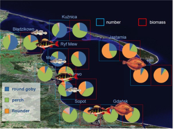 • Skład gatunkowy, dynamika zmian ichtiofauny morskich wód przybrzeżnych;